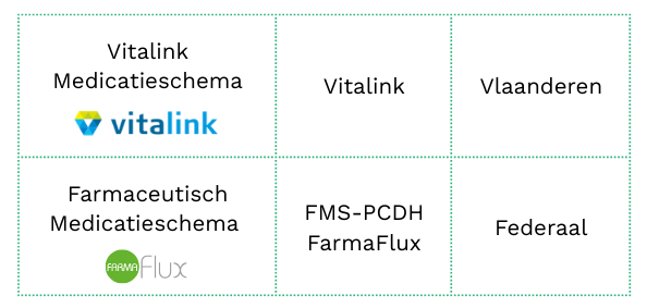 Afhankelijk van je apotheeksoftware kan je je medicatieschema delen via Vitalink en of via de PCDH.